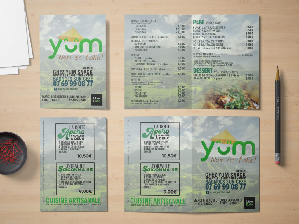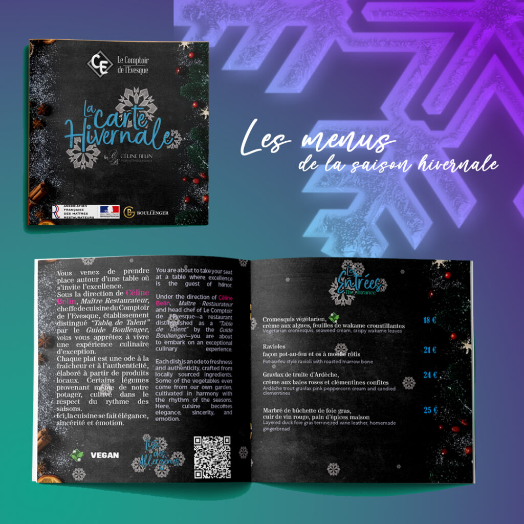 Chez Espérance Communication, nous créons des menus esthétiques et fonctionnels, adaptés à votre identité et à votre établissement.